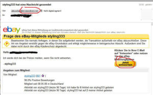 Also immer zweimal schauen, wenn man solche Mails erhält. Am Besten ins ebay Konto einloggen und dort nach der Nachricht schauen, wenn man sich nicht sicher ist.